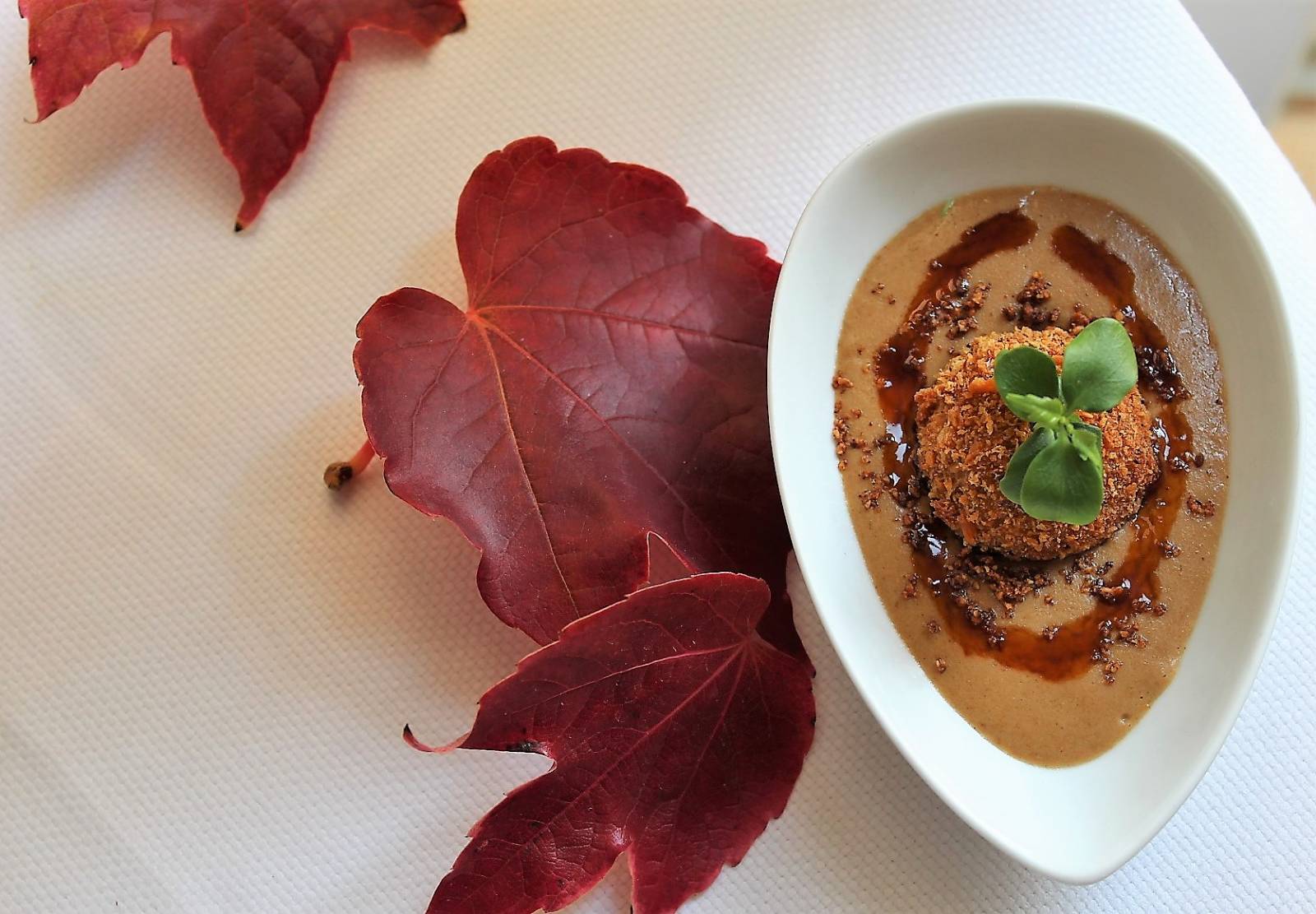 Elixir de cèpes, poudre de cazette, cromesqui de tête, végétal « sous-bois »