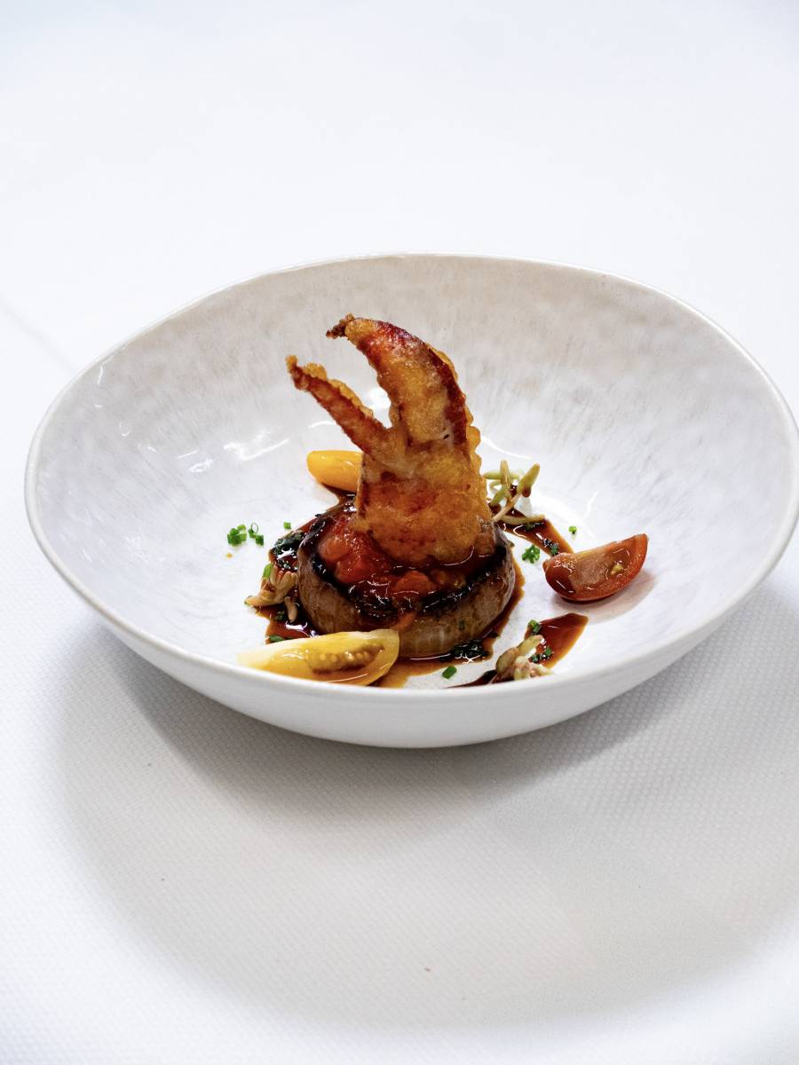 Tempura de Pince – Duxelles et Champignons sauvages – Oignon doux