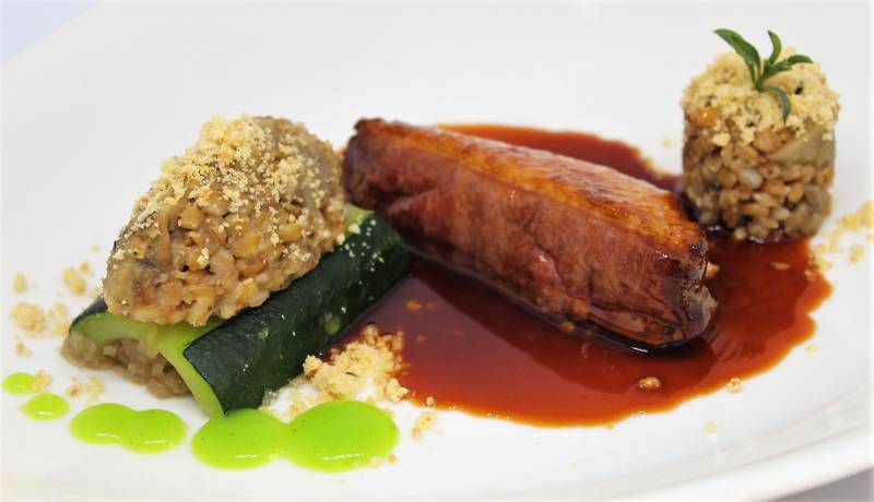 Filet de canette au vrai jus sarriette, courgette de pays,